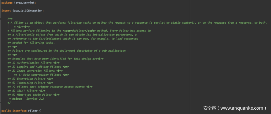 javax.servlet.Filter 是一个接口,过滤请求,实现请求的拦截或者放行,并且添加新的功能