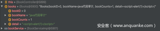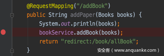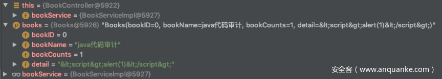 这个sql语句,发现我们传入的books参数直到sql语句执行的前一刻都没有经过任何的过滤处理,所以此处插入数据库的参数自然是不可信的脏数据。