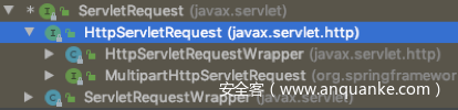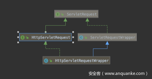 在传递参数的过程中我们通过调用XSSRequestWrapper的构造器,传递了HttpServletRequest对象,这里简单从继承关系让大家看一下HttpServletRequest和ServletRequest的关系