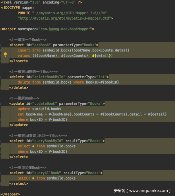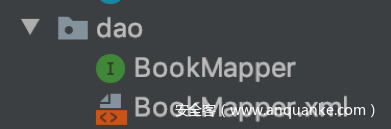 我们看到有一个叫BookMapper的接口文件,这样就明白了之前生成BookServiceImpl这个bean是通过<property>也就是通过BookServiceImpl类中的