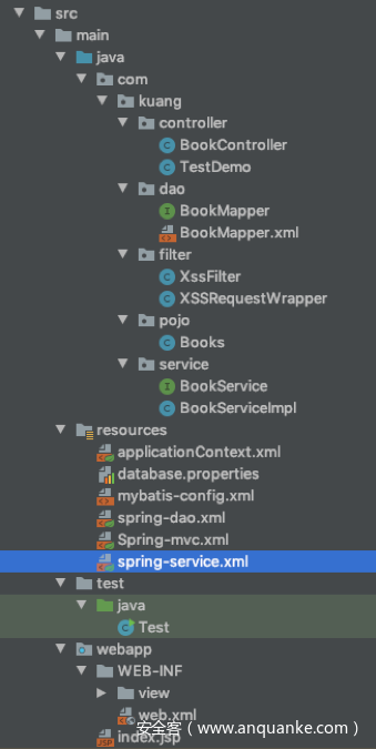 我们这里通过一个简单的Demo来描述一下SSM框架搭建的项目是如何完成一次用户请求,它的流程是怎么样的,而参数又是怎样被传递怎样被过滤的,当我们明白了这些,就可以尝试自己上手一些SSM的项目审计。