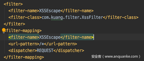 <filter-class>com.springtest.filter.XssFilter</filter-class>
