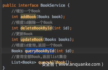首先看到该类是实现了BookService这个接口,ok我们先去看BookService这个接口
