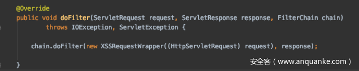 既然这里生成了一个XSSRequestWrapper对象并传入的参数那我们自然要跟进一探究竟