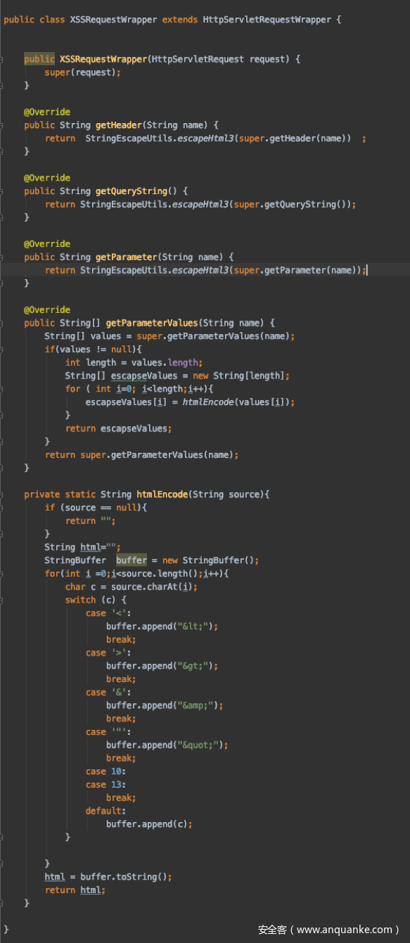 这么做当然不是多此一举,首先解耦这个理由就已经足够充分了,其次我们看到XSSRequestWrapper继承了一个类