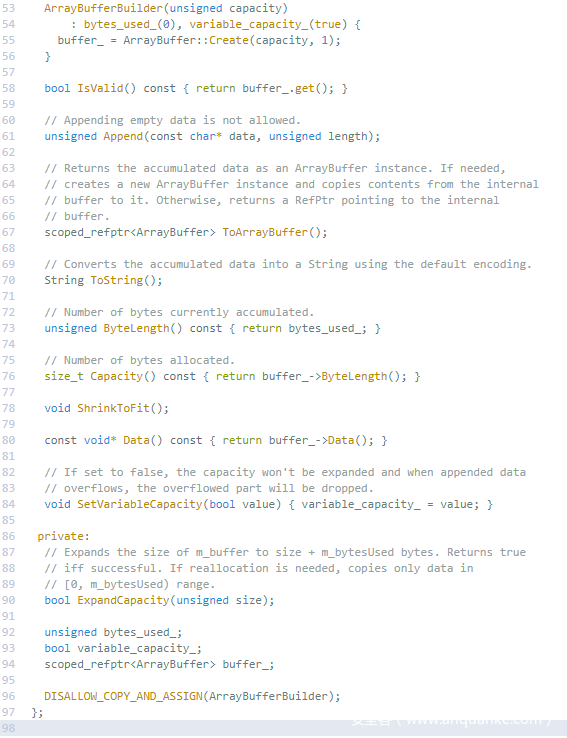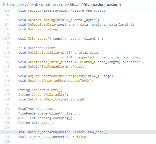 所以在调用FileReader.result属性的时候,返回的是WTF::ArrayBufferBuilder创建的WTF::ArrayBuffer对象的指针,Blob未被读取完时,指向一个WTF::ArrayBuffer副本,在已经读取完的时候返回WTF::ArrayBufferBuilder创建的WTF::ArrayBuffer自身。
