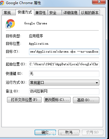 因为Chrome的沙箱机制,在调试的过程中需要关闭沙箱才可以执行任意代码。可以在快捷方式中添加no-sandbox来关闭沙箱。