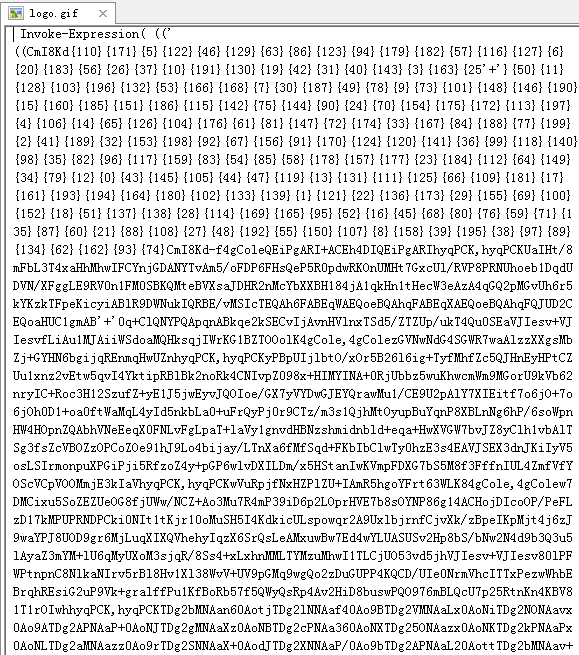 上节分析看到的http://www.hkbytes.info:80/resource/image.jpg 虽然已无法下载,但后续通过基于域名的排查关联,360威胁情报中心定位到该域名下另一个还能下载得到的样本链接:http://www.hkbytes.info/logo.gif 。其中包含的Powershell恶意代码代码如下:
