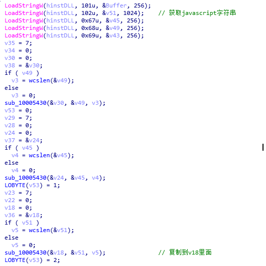 分析显示wwlib.dll的功能就是通过COM组件调用JavaScript本地执行一个脚本,相关的代码在102资源里: