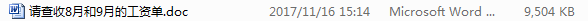 我们分析的第一个样本来自鱼叉邮件。邮件主题跟该员工的薪酬信息相关,其中附带了一个DOC文档类型的附件,附件名为 “请查收8月和9月的工资单.doc ”。