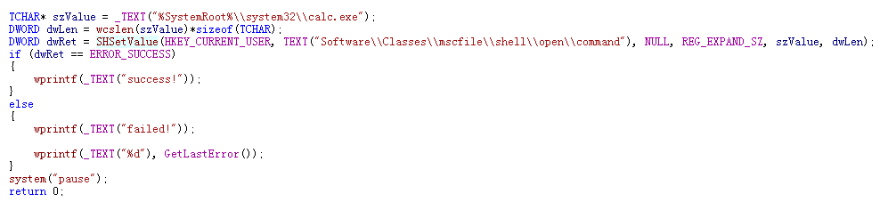 通常打开eventvwr .exe,eventvwr .exe先会到HKCU查找mscfile关联打开的方式,而这个目录下默认是没有的,这时会转到HKCR下的mscfile里去找,如找到,启动mmc.exe,因为写HKCU这个注册表键值不需要UAC,把值改成Powershell可以导致绕过UAC。