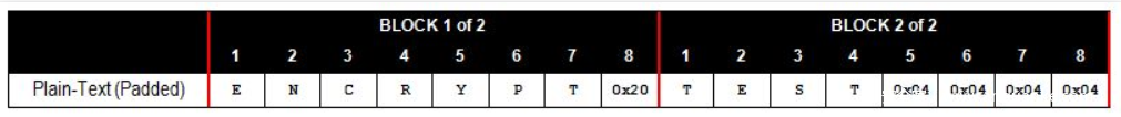 从上述所述的几种工作机制中,都无一例外的将明文分成了等长的小段。所以当块不满足等长的时候,就会用Padding的方式来填充目标。