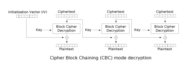 其实原理还是一样,在CBC解密时,先将密文的第一个块进行块解密,然后将结果与IV异或,就能得到明文,同时,本次解密的输入密文作为下一个块解密的IV。