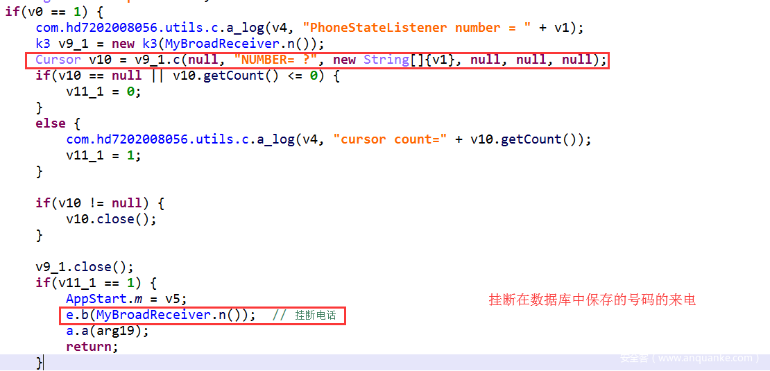 (5)监听通话状态,通过黑名单挂断指定电话: