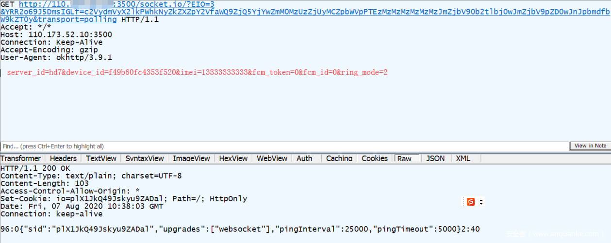 (1)该软件使用的服务器,ip归属地为香港,端口采用3500,首次访问会要求使用websocket协议进行连接。