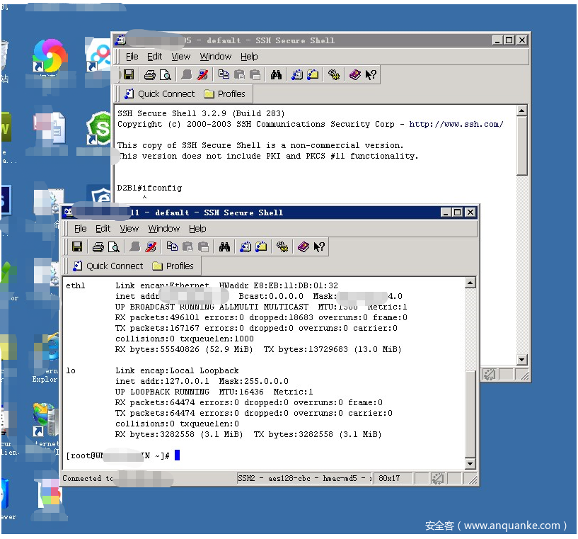 先登录第一个终端,使用命令对ssh进行监听,因为比较懒就不破解xshell得配置文件(其实是没破出来,只能这样了),读取密码。