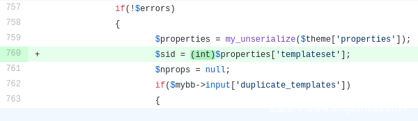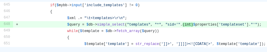 定位到 inc/class_parser.php 的 1591行,发现整个 commit 就这一处修改