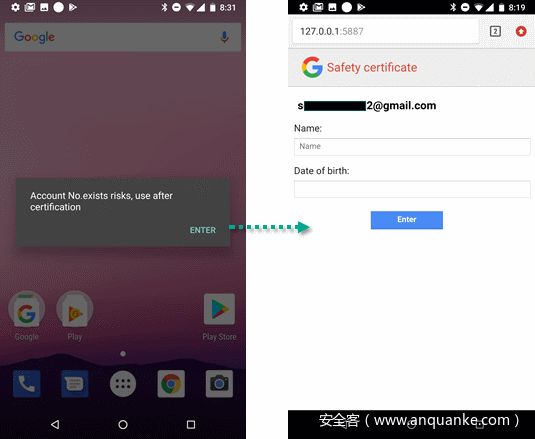 这些 app 使用了过多权限,可使得攻击者获得访问用户智能手机的全部权限。这些 app 的主要目的是覆盖在多种 app 的登录屏幕上方。