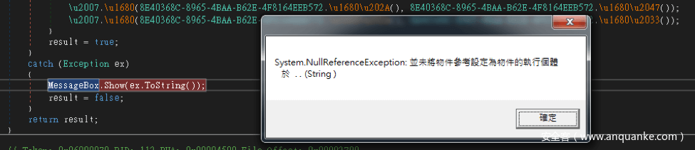 另一个有趣的地方在于,样本中还包含一个异常调试消息。