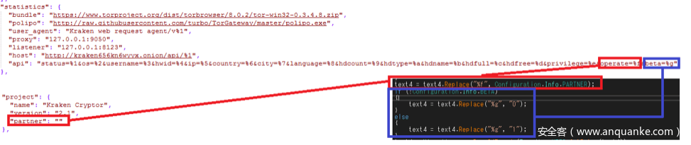 我们还发现2.1版已从配置数据中删除了beta标签。在2.07版中,这个标签在配置数据中的值为1,表明当时样本仍处于beta版中。然而在2.1版中,样本在API查询字符串中会将这个字段的值设置为0,这意味着该样本与beta版有所不同。