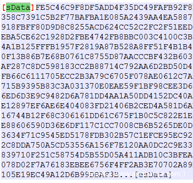 图6.第二个脚本是二进制编码的,并隐藏在uaf.icm文件中的“[sData]”和“[esData]”之间