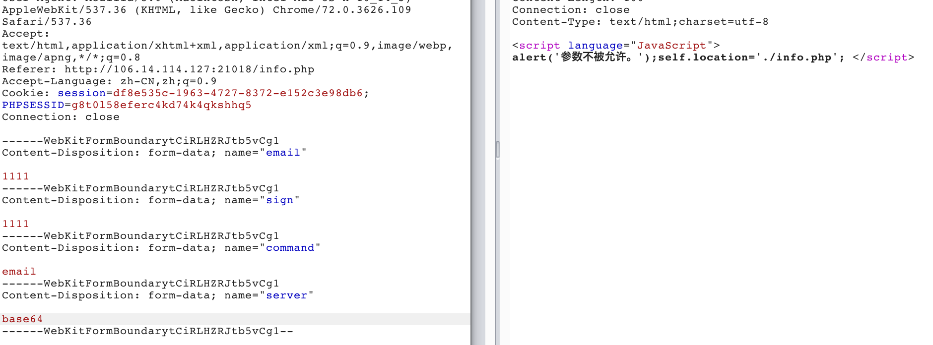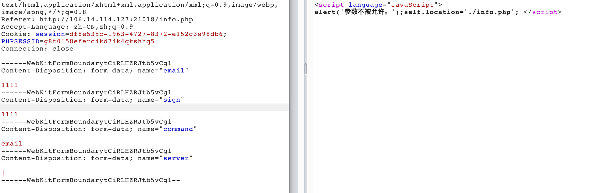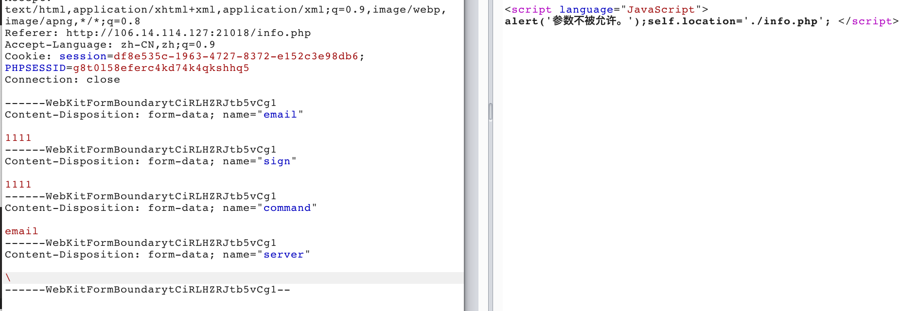 发现参数不被允许提醒,此时猜测是不是存在过滤,我们测试一下
