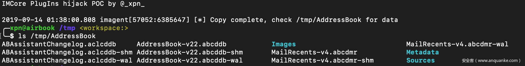 如果一切顺利,我们不会看到任何隐私警告框,并且收集到的通讯录数据已经被拷贝到/tmp目录中。