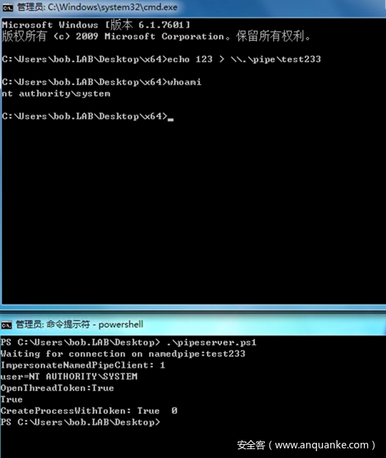 默认情况下 echo 123 > \\192.168.1.x\pipe\test233 就允许服务端模拟客户端 C++ demo