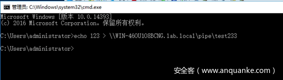 可以通过命令行利用重定向符号直接把内容写入到命名管道中 echo “test” > \\.\pipe\test