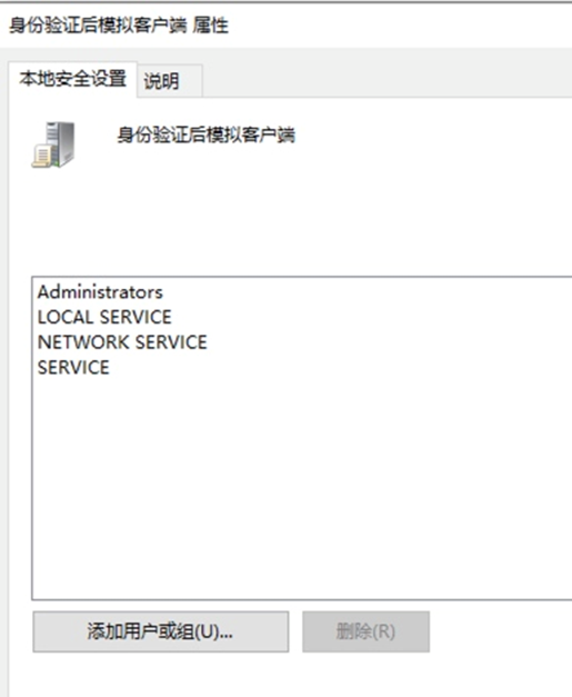 测试正常的模拟 默认情况下只有服务用户具有模拟客户端的功能,所以测试前需要为测试用户启用以下权限