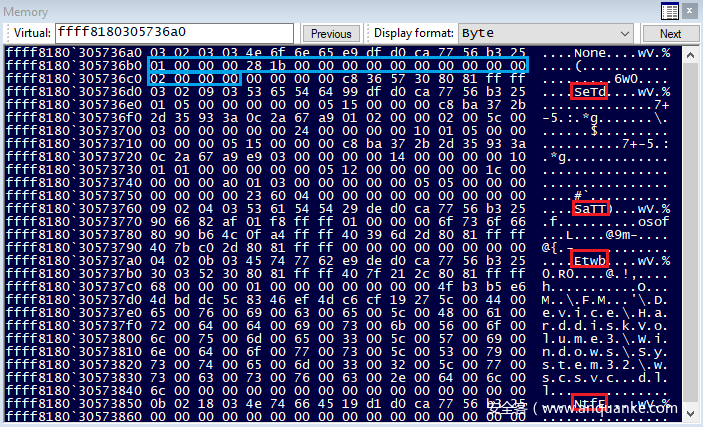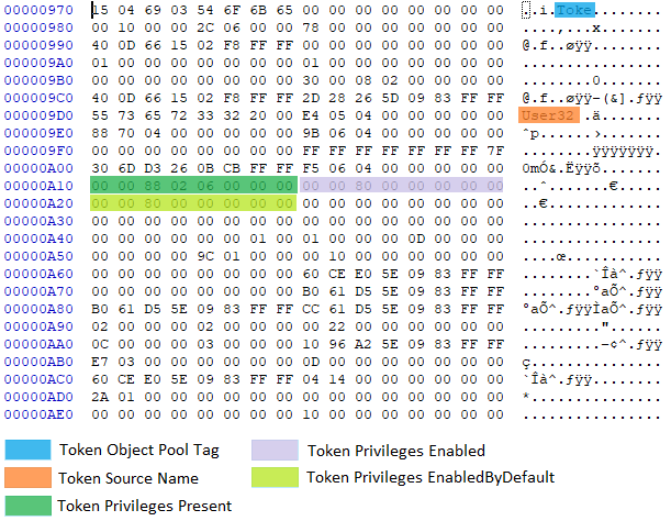 测试我们发现,有时候我们能获取到令牌对象(Token Object),这是内核本地权限提升(LPE)攻击中最常用的目标。这些为分页池对象,现在已经被我们牢牢掌握。