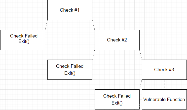 请注意该代码中检查方式并不唯一,二进制文件中会存在很多种不同类型的条件检查情况。之所以选择这种方式,是因为这样做可以以一种夸大的形式说明纯粹依靠随机性来覆盖目标程序中新的范围是很困难的。