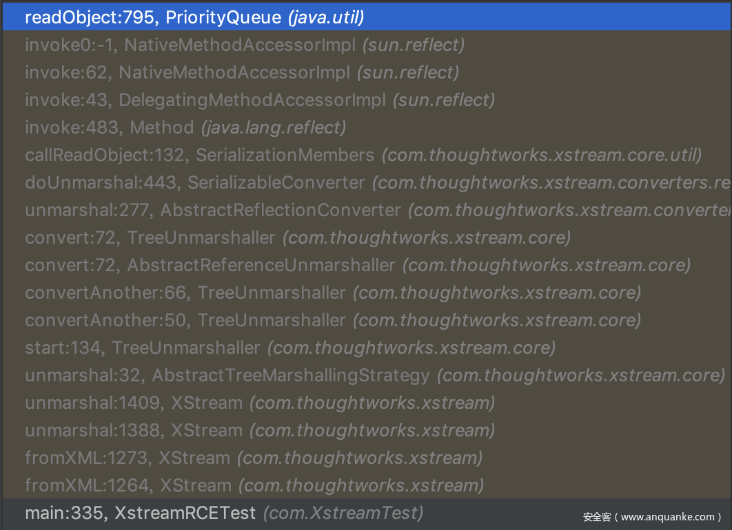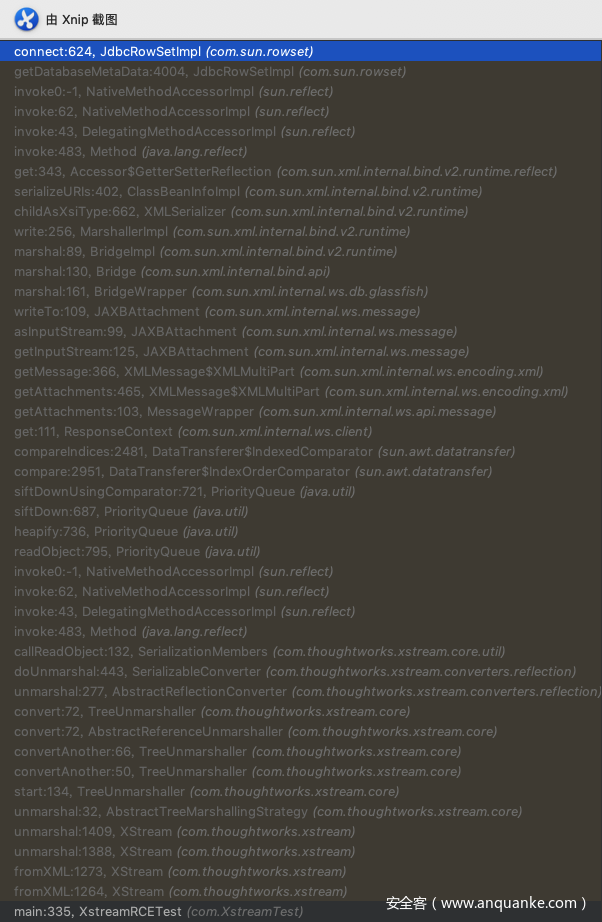 此次爆出的几个反序列化RCE漏洞,总结下漏洞的触发点分别为“java.util.PriorityQueue.compare()“、“javax.naming.ldap.Rdn$RdnEntry.compareTo()”、而Xstream的防护方法也是很直白是通过黑名单的形式来进行防护。