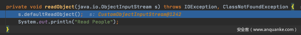 会发现执行过程中居然调用了我们重写的readObject方法,此时的调用链如下