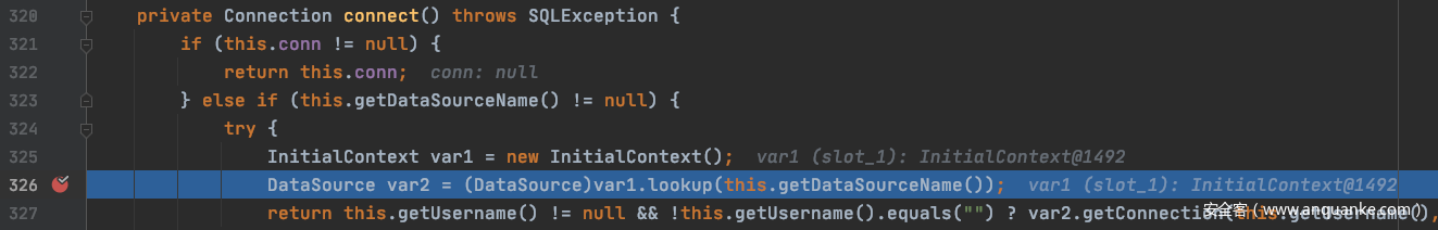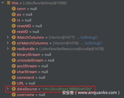 接下来的流程就还是JdbcRowSetImpl的老一套了,就不再深入说明了。至此CVE-2021-21351分析完毕