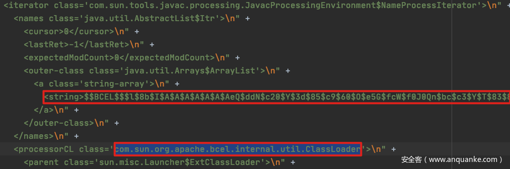 private static final Pattern BCEL_CL = Pattern.compile(".*\\.bcel\\..*\\.util\\.ClassLoader");