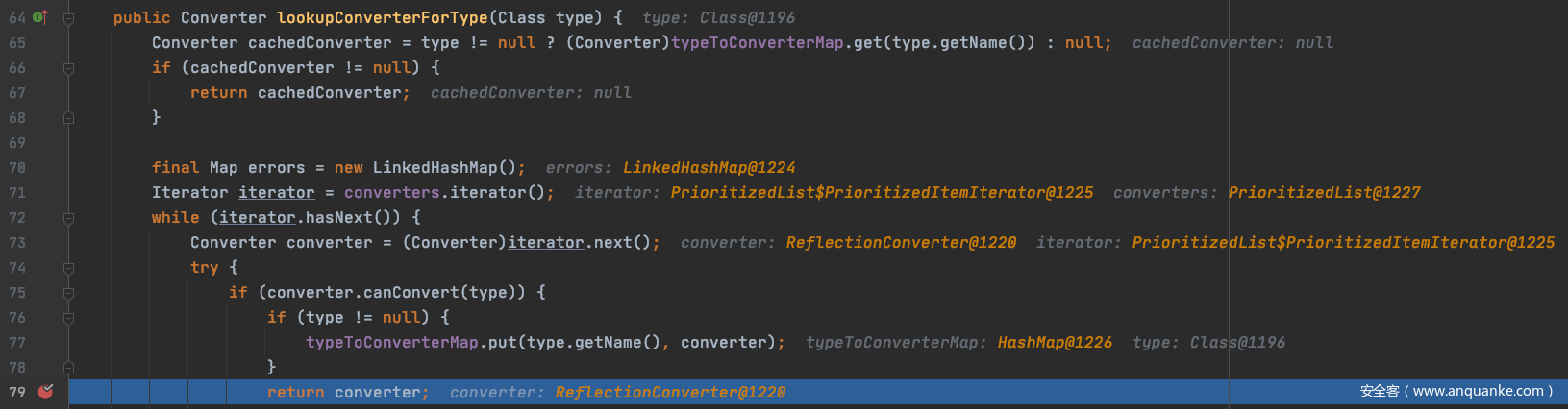 更换序列化后的数据,在同样的位置打上断点,会发现这里处理People的Converter由ReflectionConverter变成了,SerializableConverter。