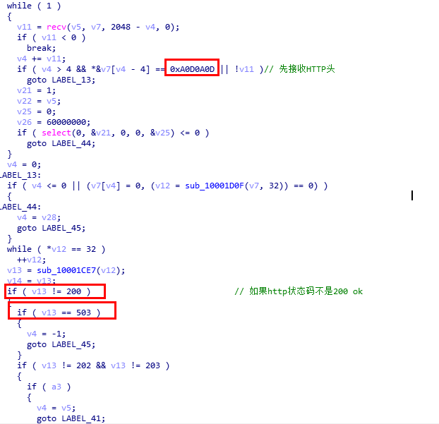 远控服务器是通过不同的HTTP状态码来下发控制指令,受控端会进行判断。