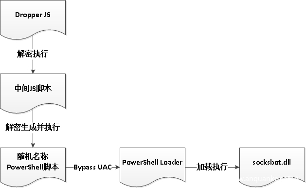 在“摩诃草”组织最新制作的攻击恶意代码中,我们发现其主体模块使用JS和PowerShell脚本进行编写,并利用多次解密、拼接来释放和加载下一阶段的攻击载荷。