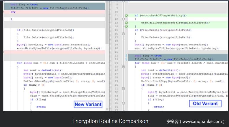 新旧样本之间主要加密例程的对比表明,这个版本的 SamSam 很可能属于同样的恶意软件家族。