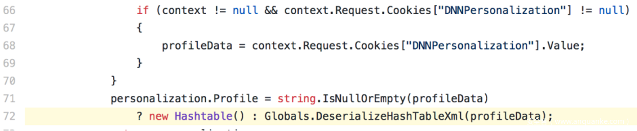 从Cookie中获取到DNNPersonalization的值后再传给Globals中的DeserializeHashTableXml方法。