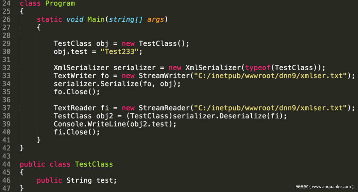 XmlSerializer是.net中用于在对象和XML文档之间进行序列化和反序列化操作的类,其功能和Java中的Xstream是一样的,但是由于语言的特性不一样,它们对序列化和反序列化的实现方式也是不一样的。所以即使是同样的对XML数据反序列化利用,它们的自动触发和利用方式是不一样的。