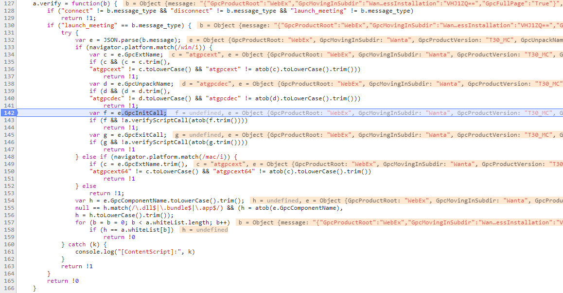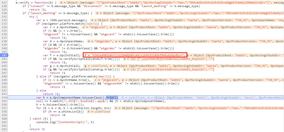 可以看到,在校验了message_type为launch_meeting后,对message进行了解析,调用JSON.parse(b.message),将传入的消息被进行json解析,解析之后,判断当前为Windows系统,接着分别判断了: