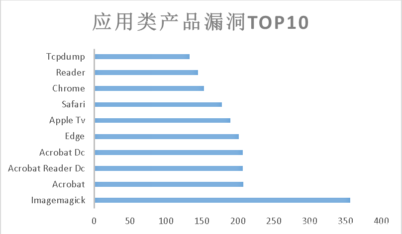 筛选出应用类产品漏洞top10,大多来自Adobe,Microsoft,Apple和Google的产品。排在首位的是ImageMagick,他是一个免费的创建、编辑、合成图片的软件。查阅具体漏洞发现,其大多数都是文件解析及编辑器方面的问题,这种漏洞可以在短期内fuzz出来。不知为何2017年漏洞剧增,难道因为破窗效应?