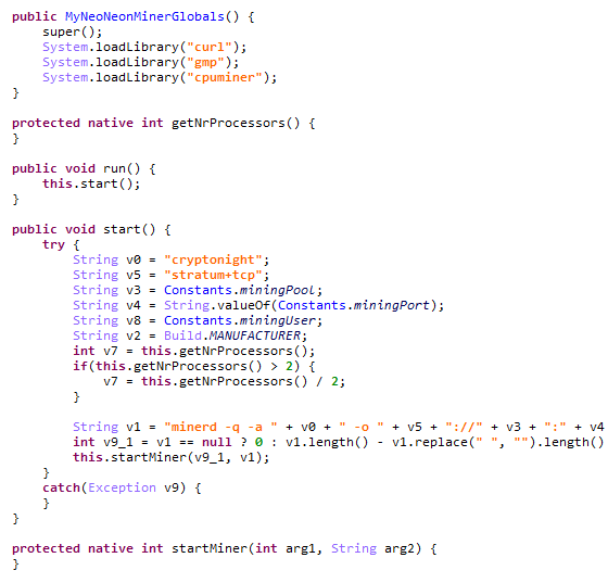 图5.代码片段显示了HiddenMiner如何挖掘Monero